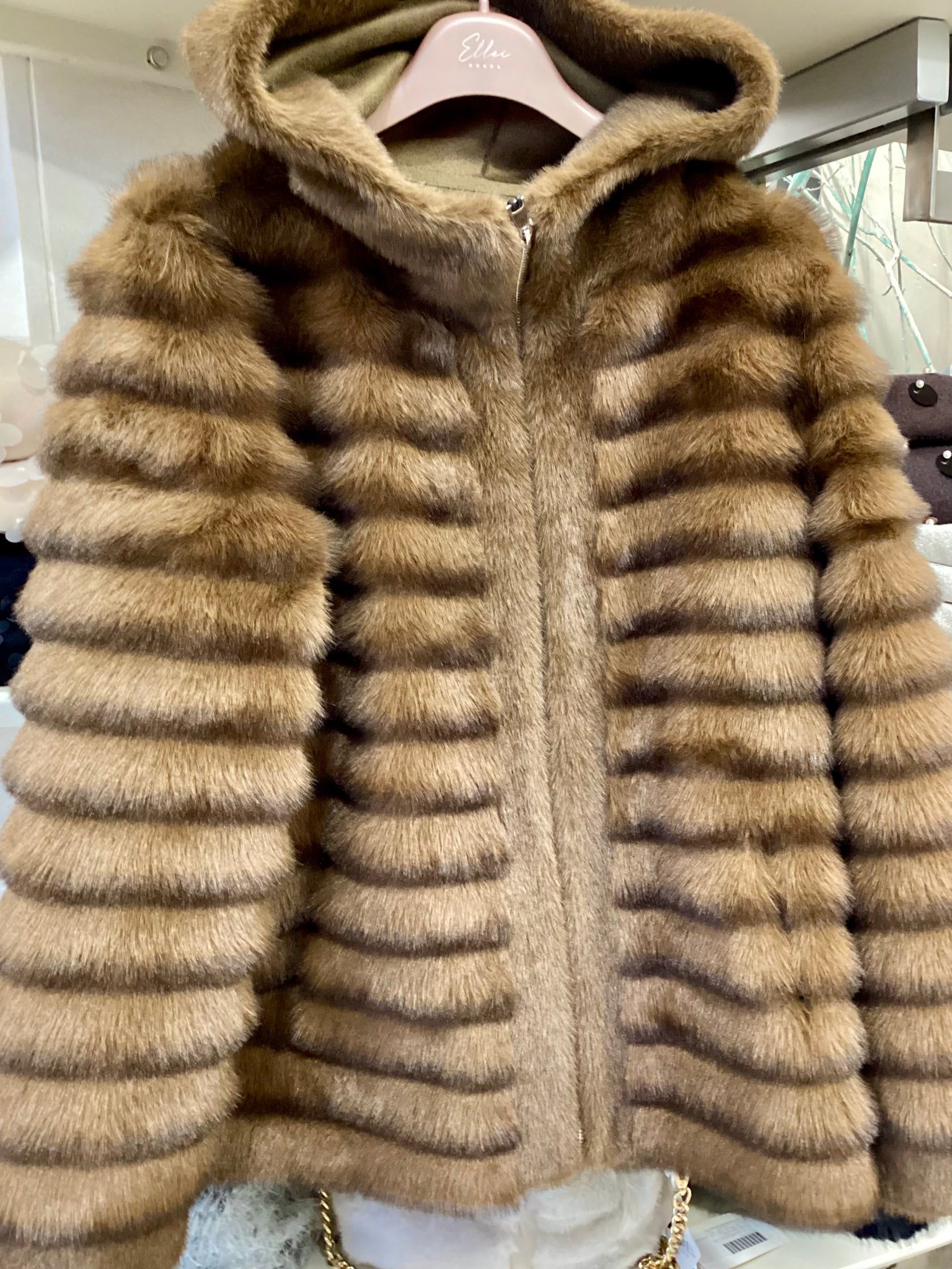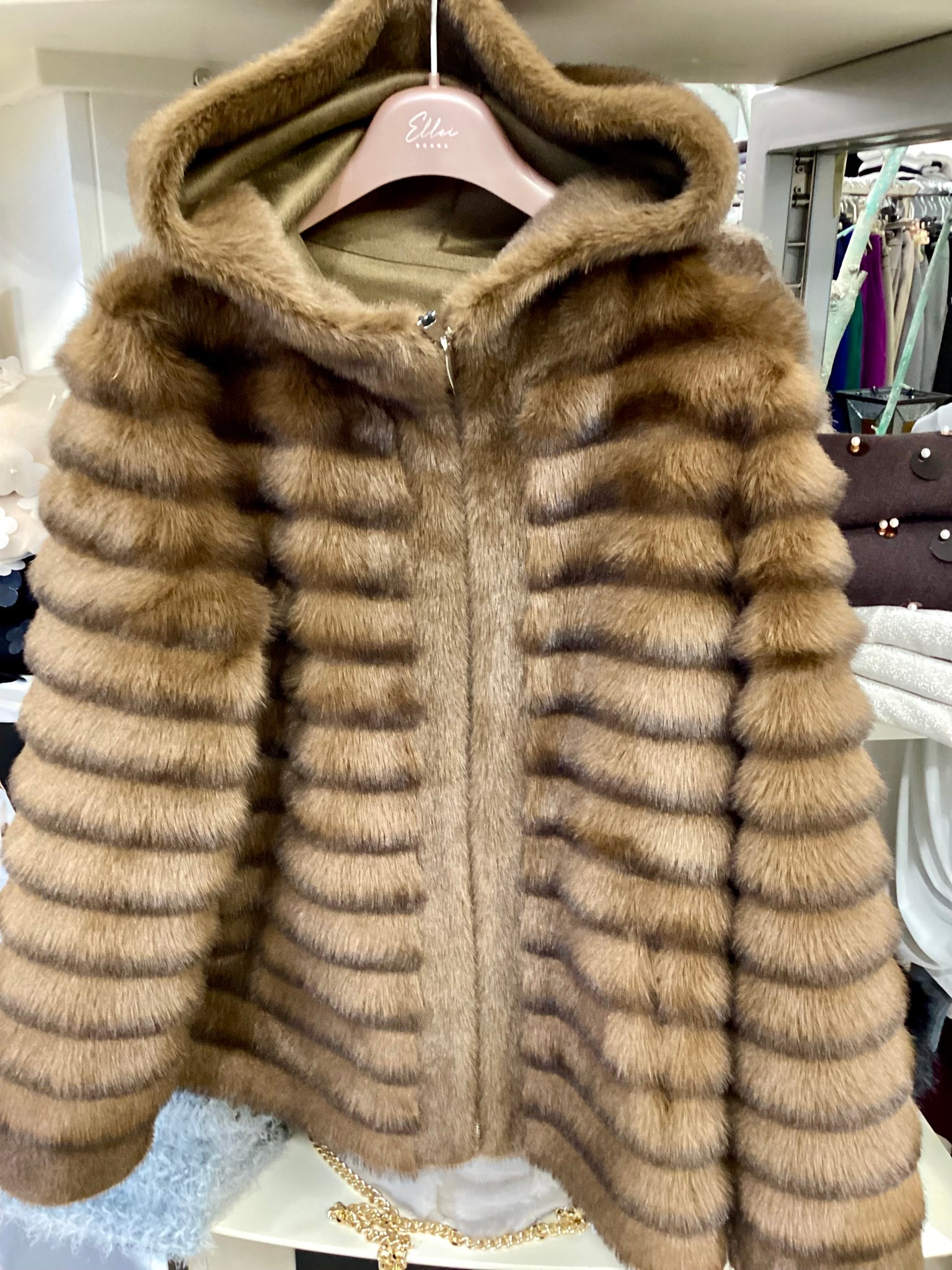 Questa eco pelliccia a tre quarti unisce stile e comfort in modo irresistibile. Morbida e avvolgente, è perfetta per mantenerti calda senza rinunciare alla leggerezza. Il cappuccio aggiunge protezione extra, mentre la chiusura a zip e le tasche interne offrono praticità e sicurezza per i tuoi oggetti. Scegli un capo elegante e sostenibile per affrontare le giornate fredde con classe.