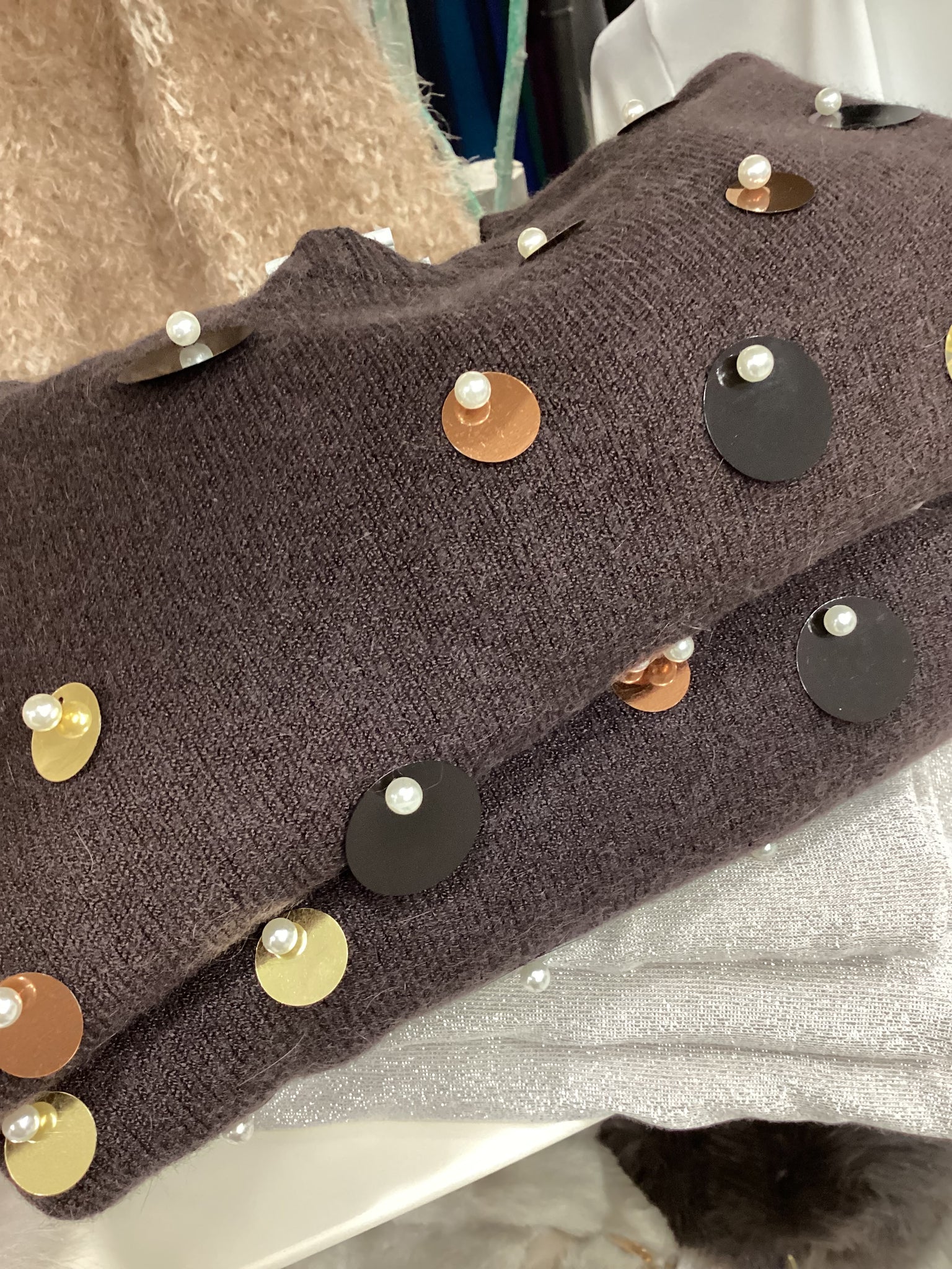 Questa maglia corta valorizza ogni silhouette con eleganza grazie agli strass e perle che la impreziosiscono. Il girocollo classico aggiunge un tocco raffinato, mentre il tessuto in misto viscosa garantisce comfort e vestibilità perfetta. Ideale per chi cerca un capo perfetto per occasioni speciali o per dare un tocco glamour al look quotidiano.